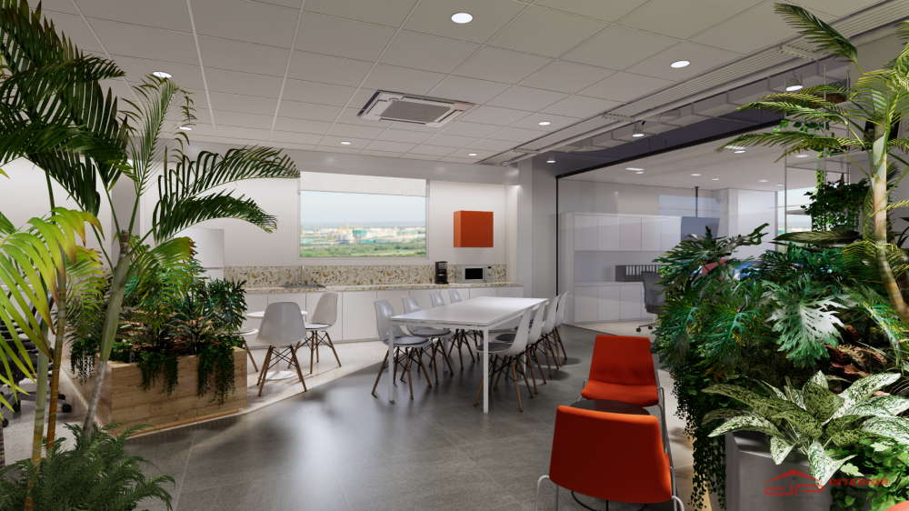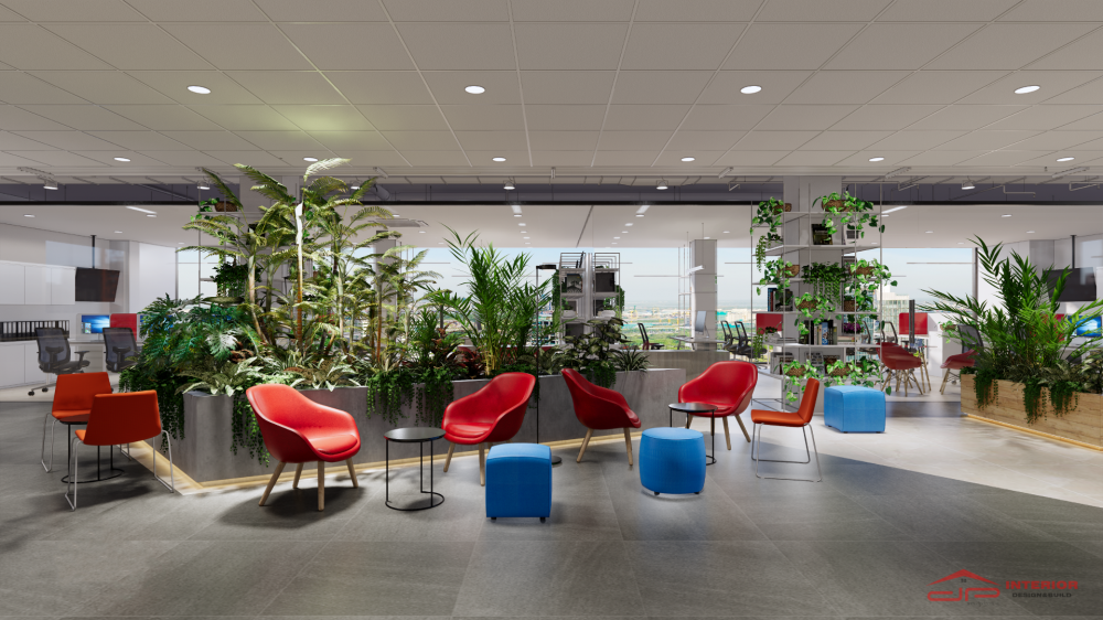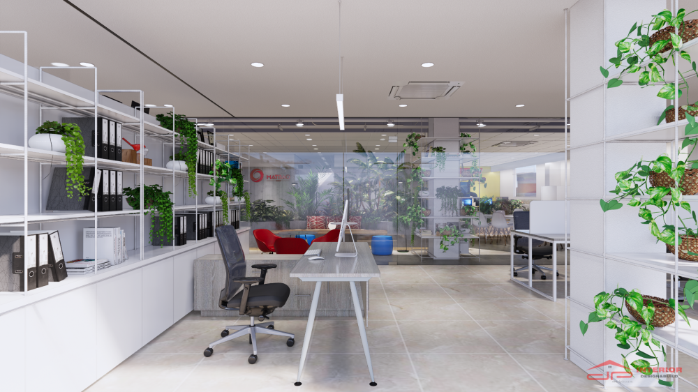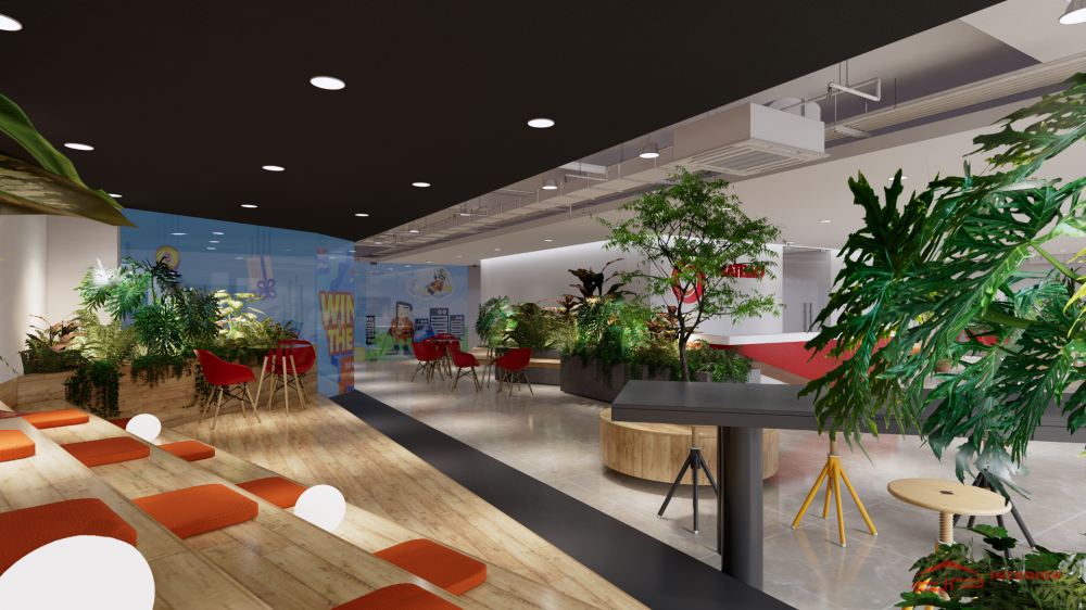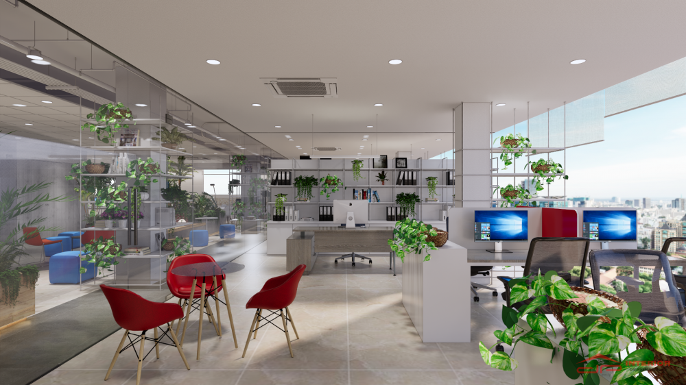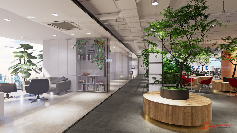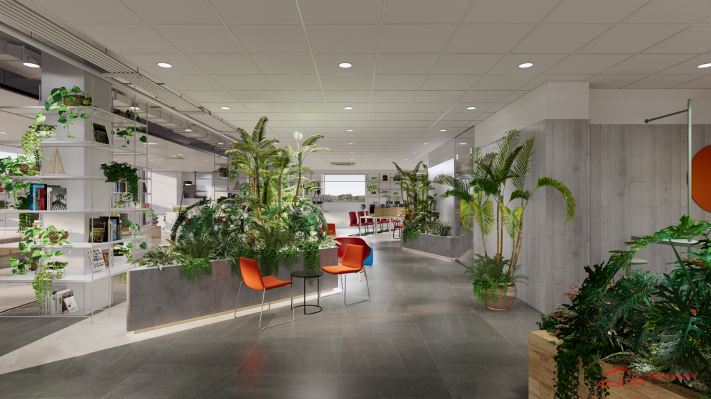Các mảng cây xanh được đưa vào nhiều làm cho văn phòng trở nên tươi mát, mang đến cảm giác gần gũi với thiên nhiên. Hoà quyện với thiên nhiên làm cho năng suất làm việc của toàn bộ anh chị làm việc trong toà nhà trở nên năng suất hơn nhiều lần.