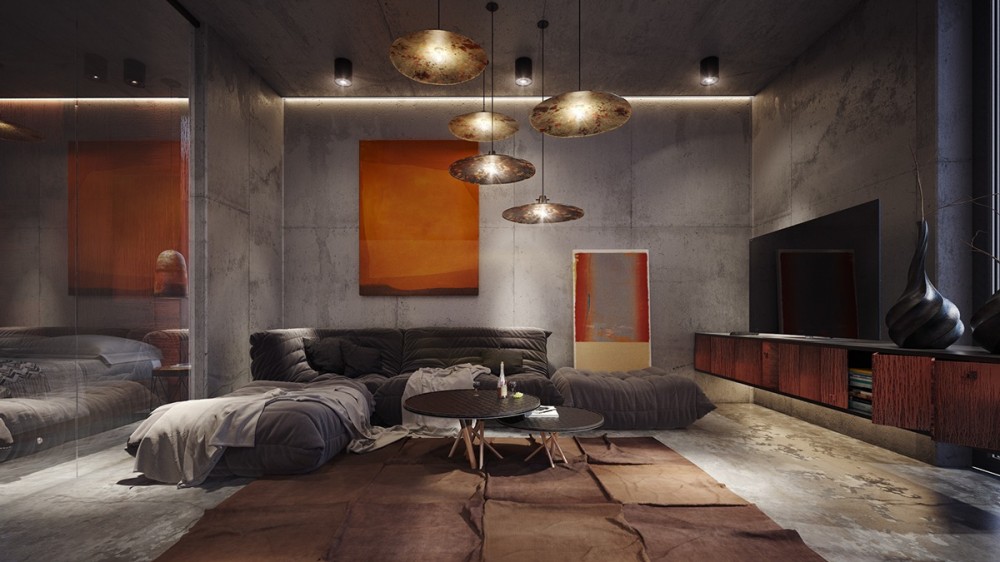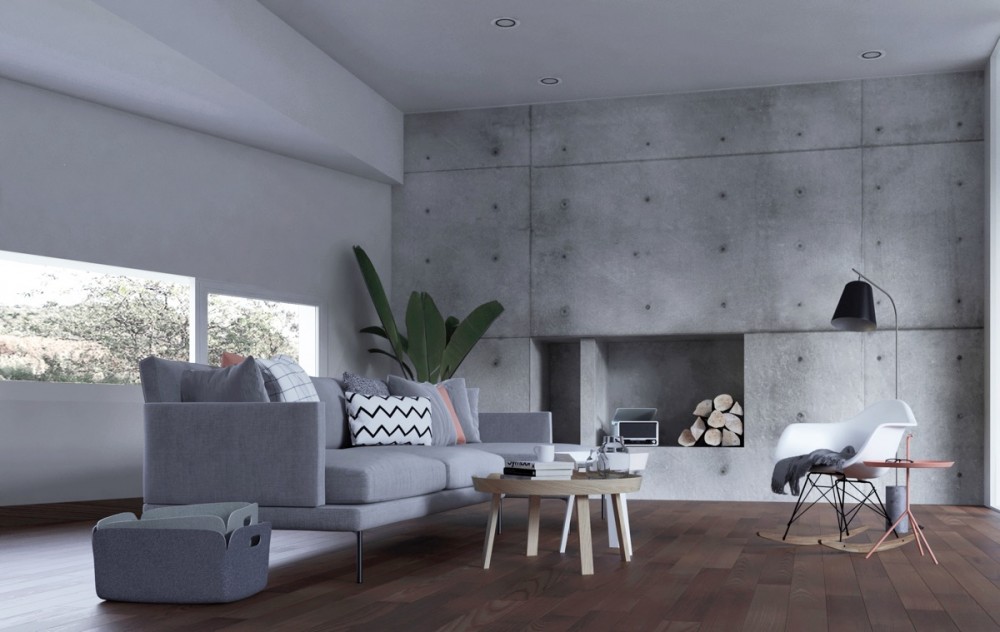 Nhắc đến bê tông, nhiều người sẽ nghĩ ngay đến sự khô cứng, thô ráp và xấu xí. Ít ai có thể ngờ rằng, phong cách bê tông cũng có thể khiến cho phòng khách của một căn nhà trở nên độc đáo và ấn tượng đến thế này.
