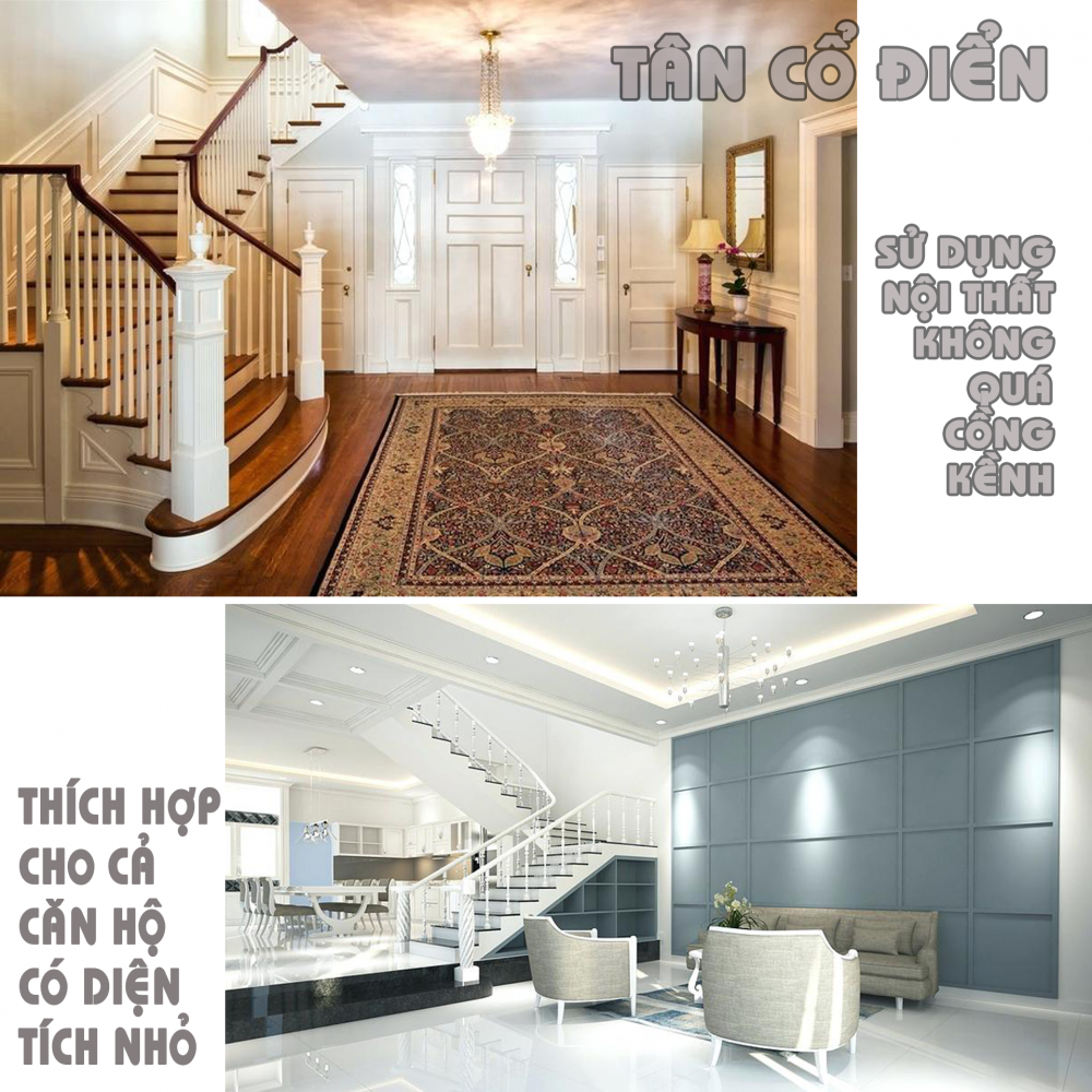 Phong cách tân cổ điển là sự kết hợp khéo léo giữa hiện đại và cổ điển nhằm hướng tới sự giản dị và cân đối trong đường nét thiết kế mà vẫn mang lại sự sang trọng, tiện lợi cho công trình