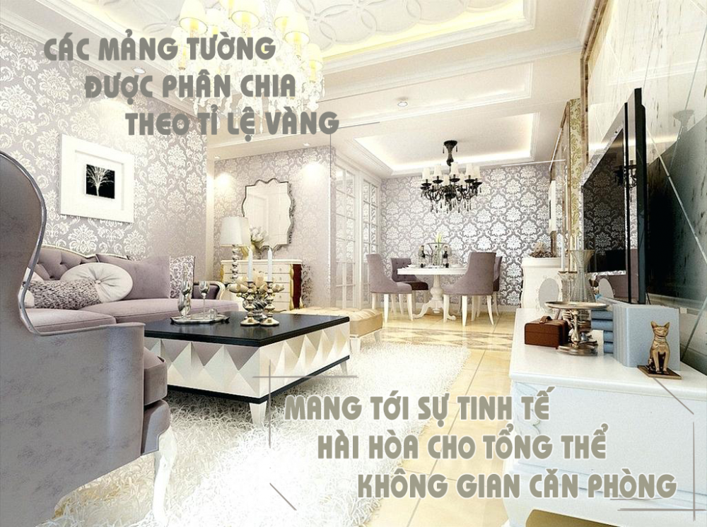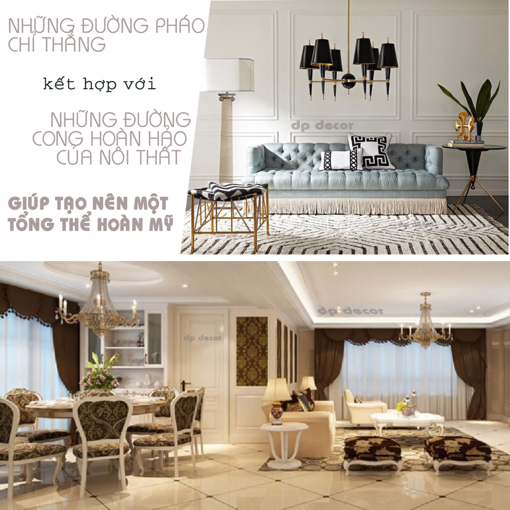 - Trong thiết kế nội thất tân cổ điển không gian được ngăn chia bởi các chi tiết phào chỉ đẹp mắt trên mặt phẳng của trần.