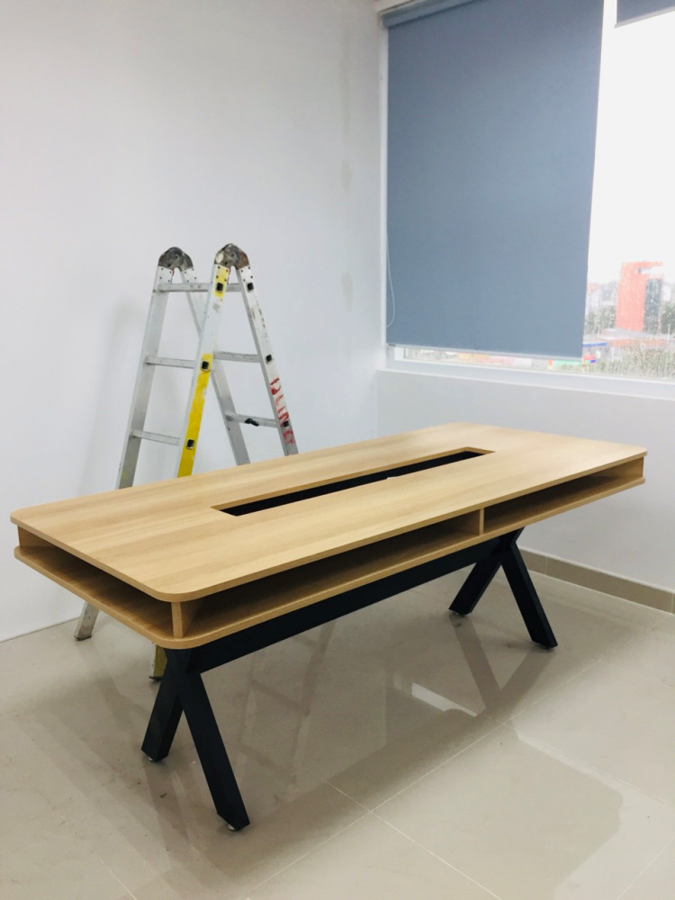 Văn phòng được thiết kế hài hòa, mang tính phổ thông phù hợp với nhiều tổ chức doanh nghiệp, cụm nội thất bàn sử dụng hệ bàn chân sắt, dễ tháo rời vận chuyển, cũng như bố trí theo công năng của từng doanh nghiệp.